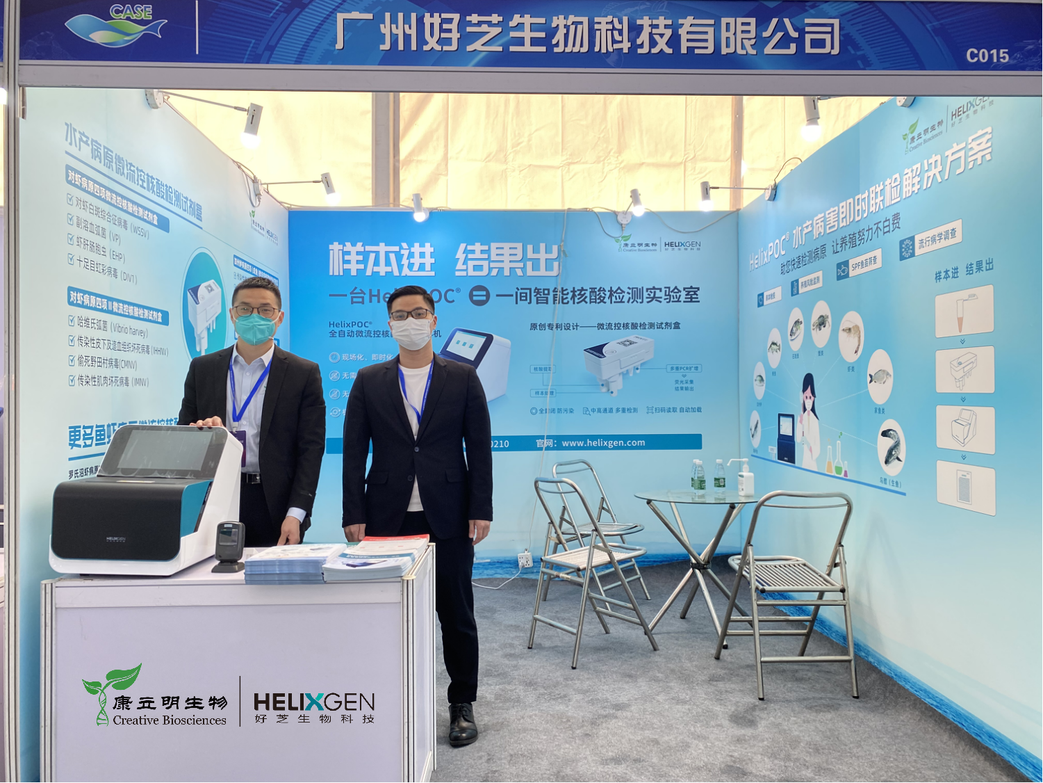 本次展會,康立明生物全資子公司好芝生物攜帶HelixPOC®全自動微流控熒光PCR一體機及HelixPOC®水產(chǎn)病原微流控核酸檢測試劑盒赴展。